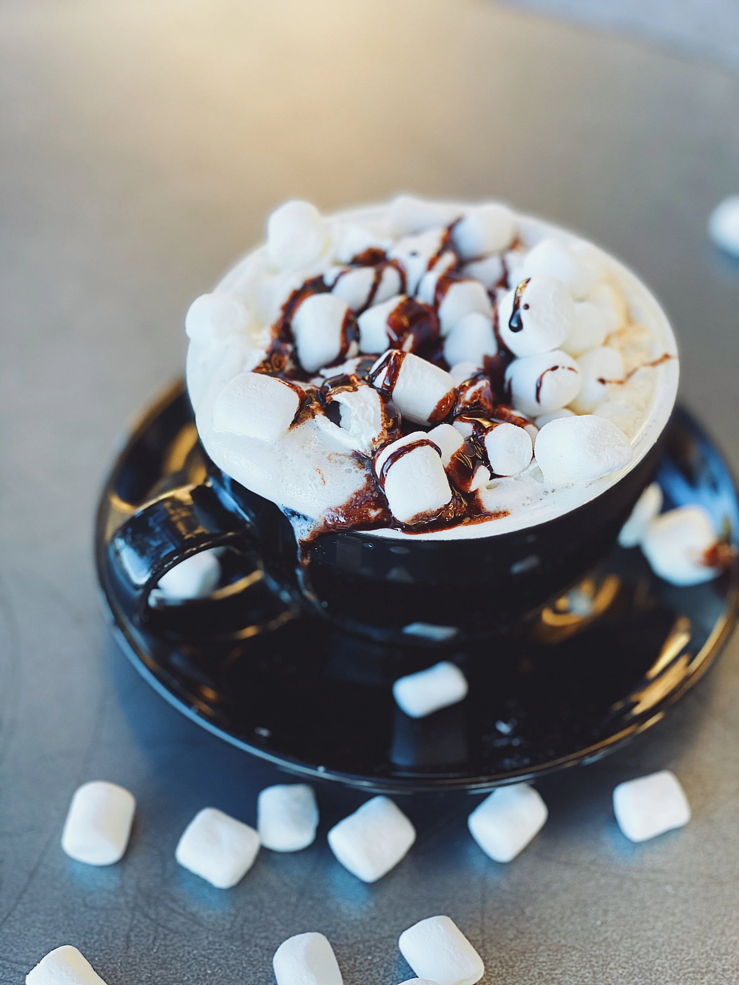 Dark chocolate, espresso, milk that is fully loaded with whipped cream, mini marshmallows and a chocolate drizzle. Available iced or hot!