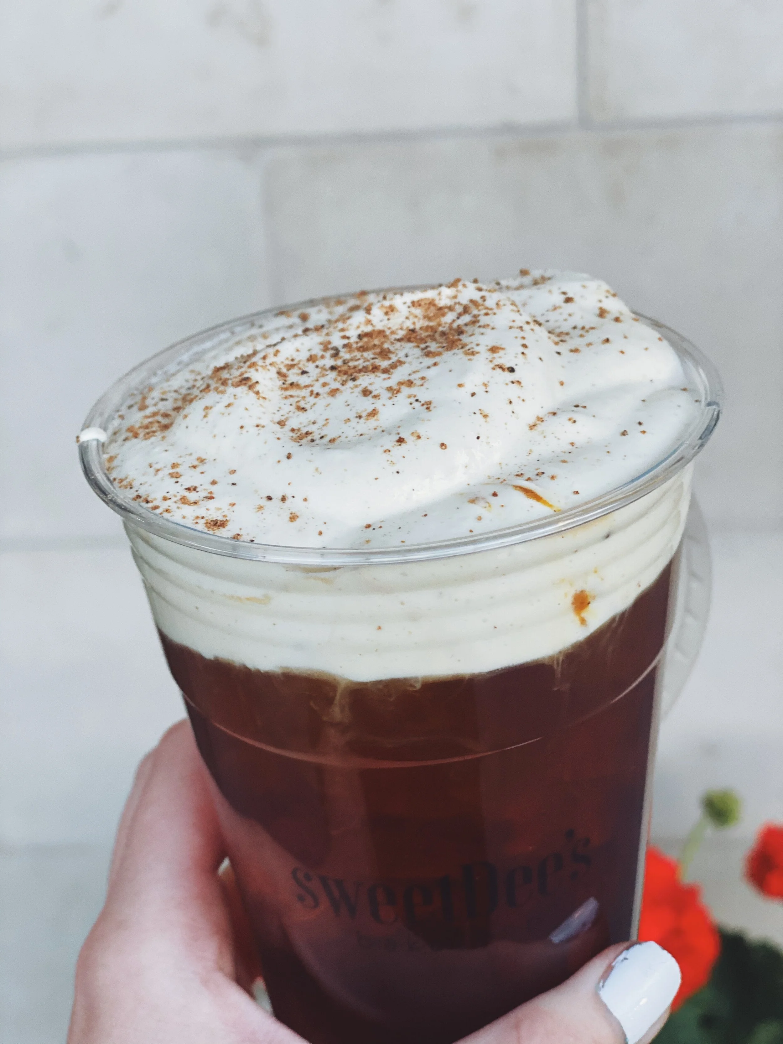 Press Cold brew sweetened with our house eggnog syrup! Topped with a hand whipped eggnog cold foam for the ultimate Christmas slippage!